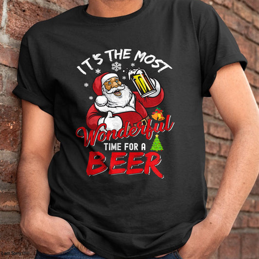 Funny Christmas Santa Claus Drinking Beer Wonderful Time T-Shirt - Christmas Unisex T-Shirt/Hoodie/Sweatshirt - HNDS00
