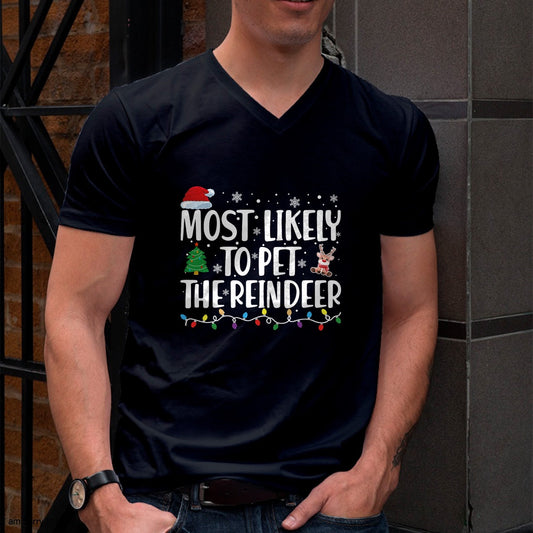 Most Likely To Pet The Reindeer Family Matching Christmas T-Shirt - Christmas Unisex T-Shirt/Hoodie/Sweatshirt - HNDS00