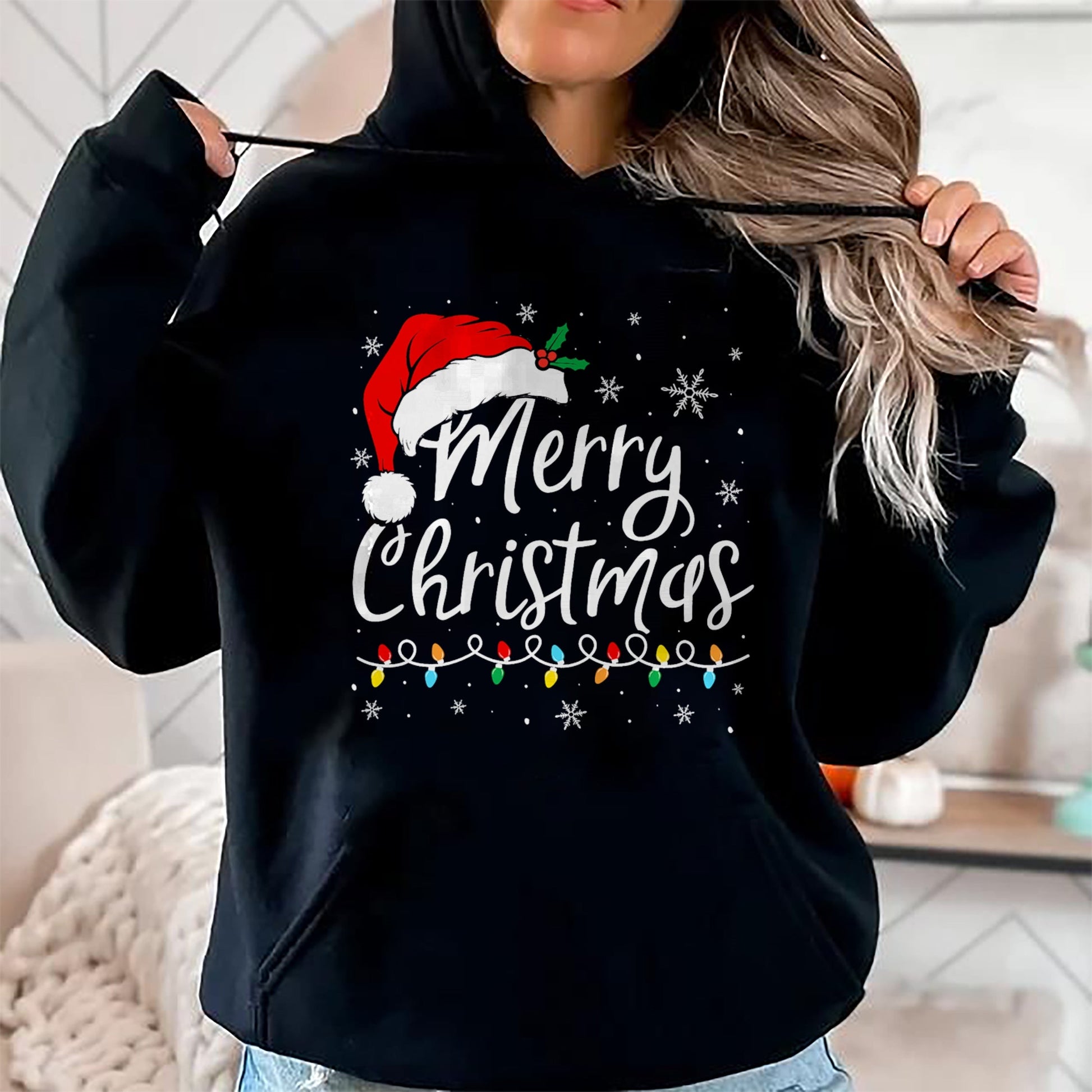 Merry Christmas Lights Santa Hat Xmas Family Matching Pajama T-Shirt - Christmas Unisex T-Shirt/Hoodie/Sweatshirt - HNDS00