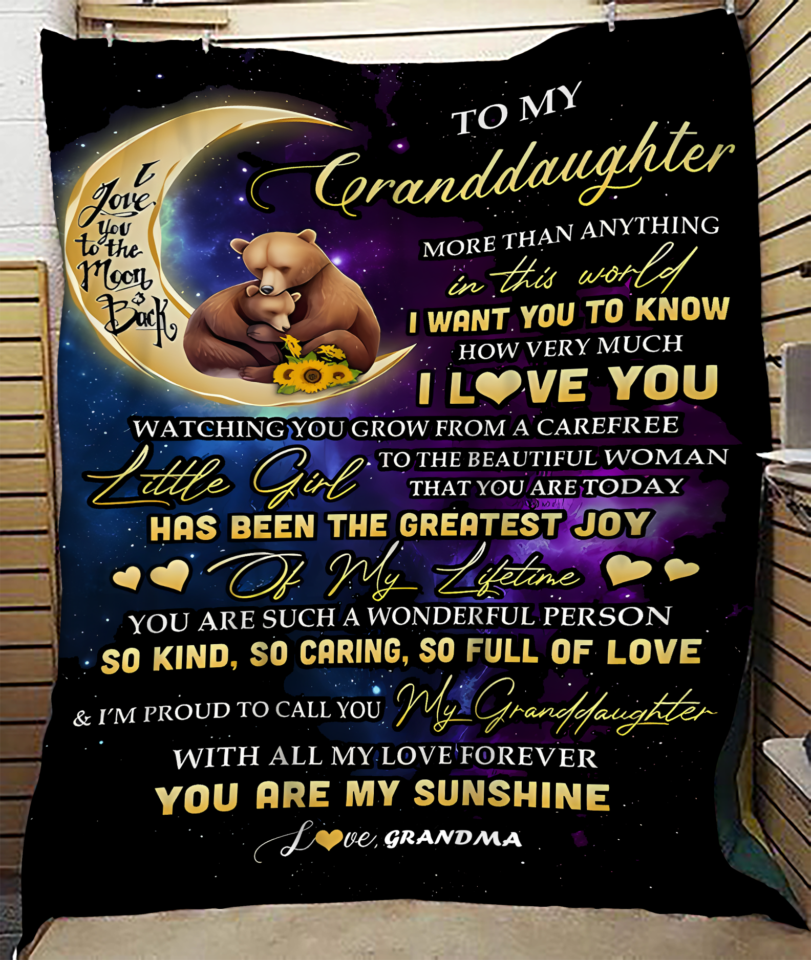 This blanket isn’t just a gift, it’s a reminder of my love for my grandchild. The message on it is so heartfelt, and I know it will be something they’ll keep for years to come.