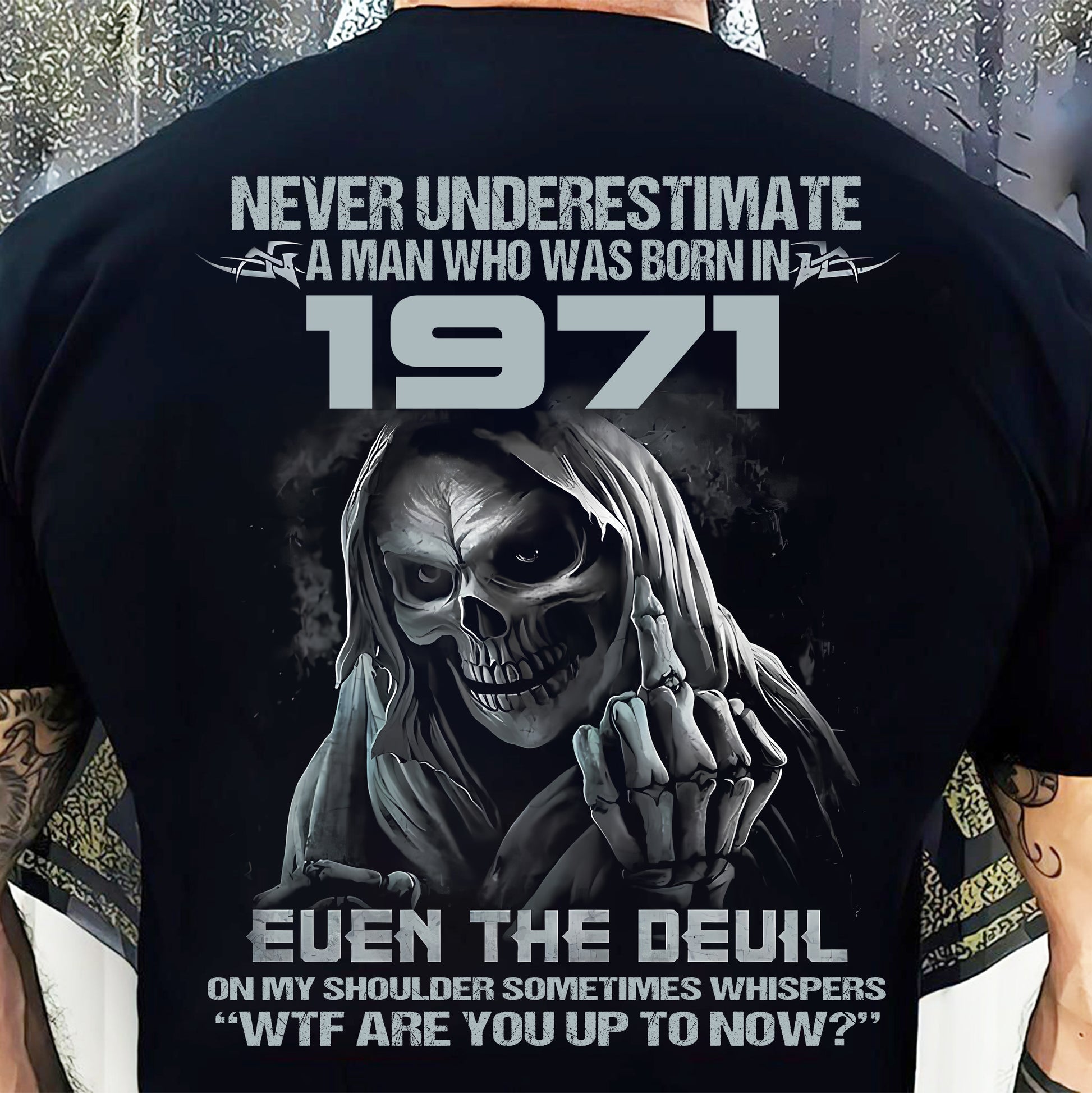 Never Underestimate a 1971 Man – Grim Reaper Attitude Shirt (SKU07-58-1971)