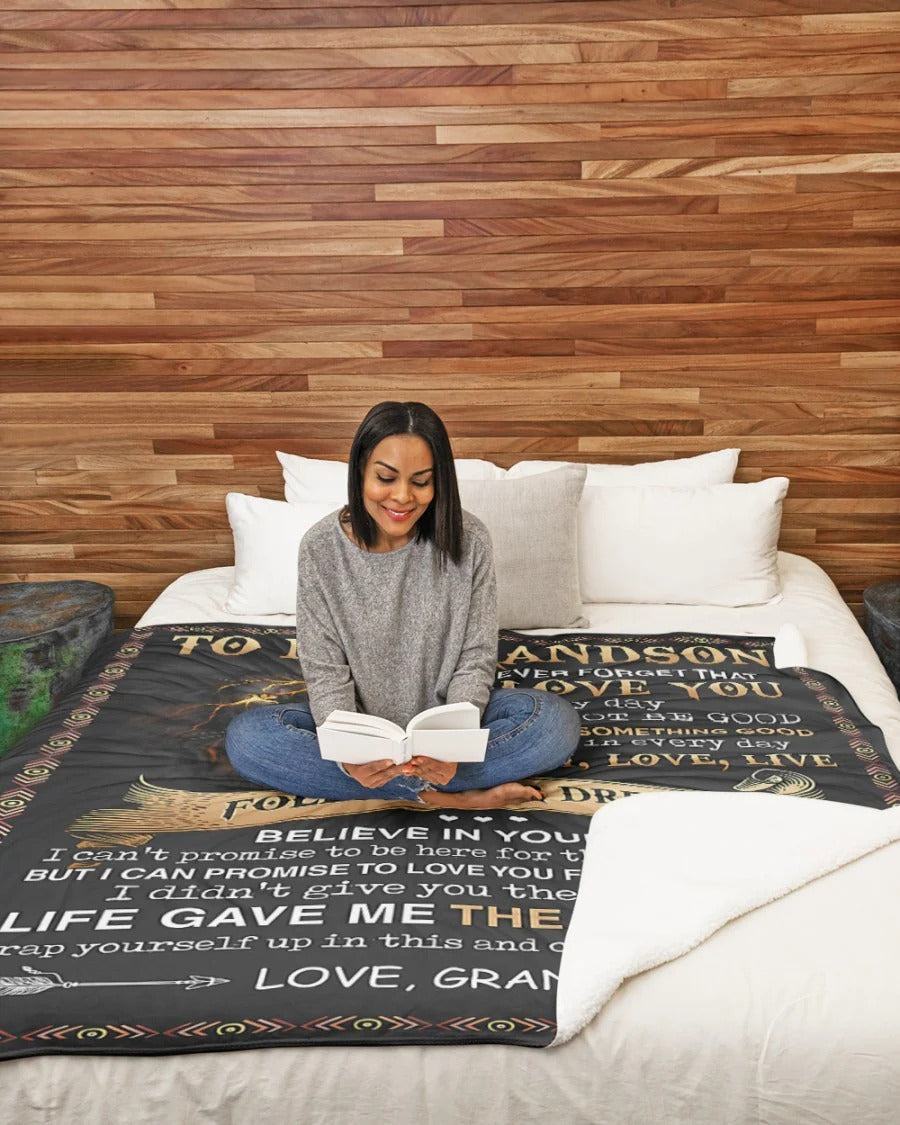 BLANKET FOR GRANDSON – COMFORT & WARMTH GIFT FROM GRANDMA Sherpa Fleece Quilt Blanket NTTD00 (SKUB09-43)