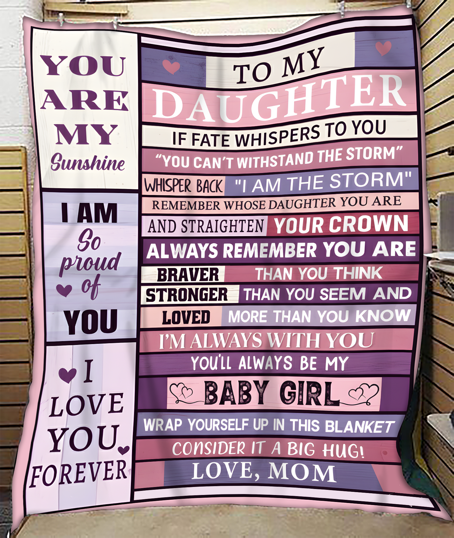 When my daughter read the blanket, she got quiet and then hugged me so tight. It was such a sweet and emotional moment. The quality is amazing too — soft and warm.