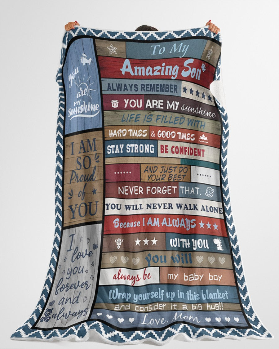 BLANKET FOR SON – COMFORT & WARMTH GIFT FROM MOM Sherpa Fleece Quilt Blanket NTTD00 (SKUB11-BLK-13)